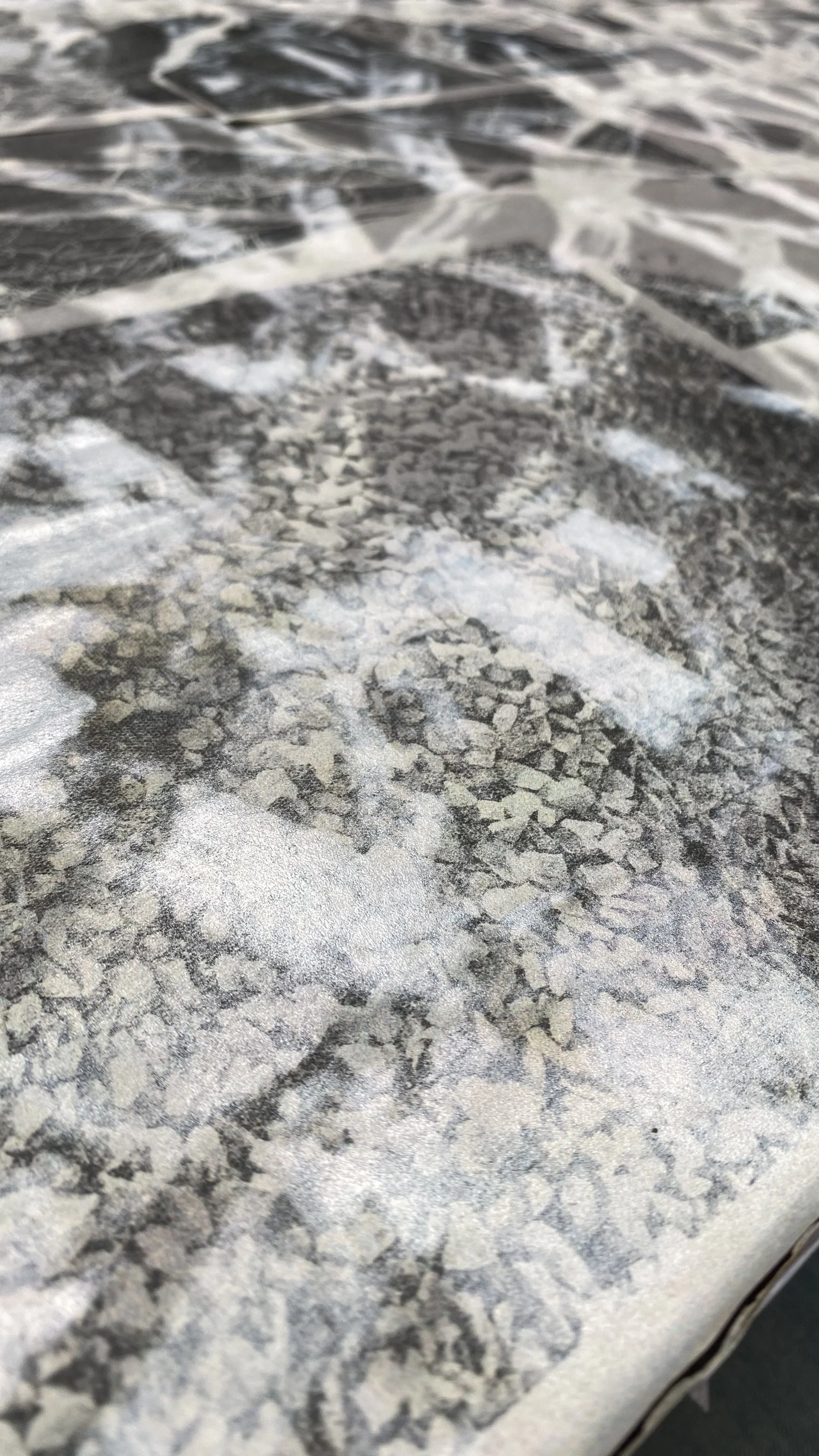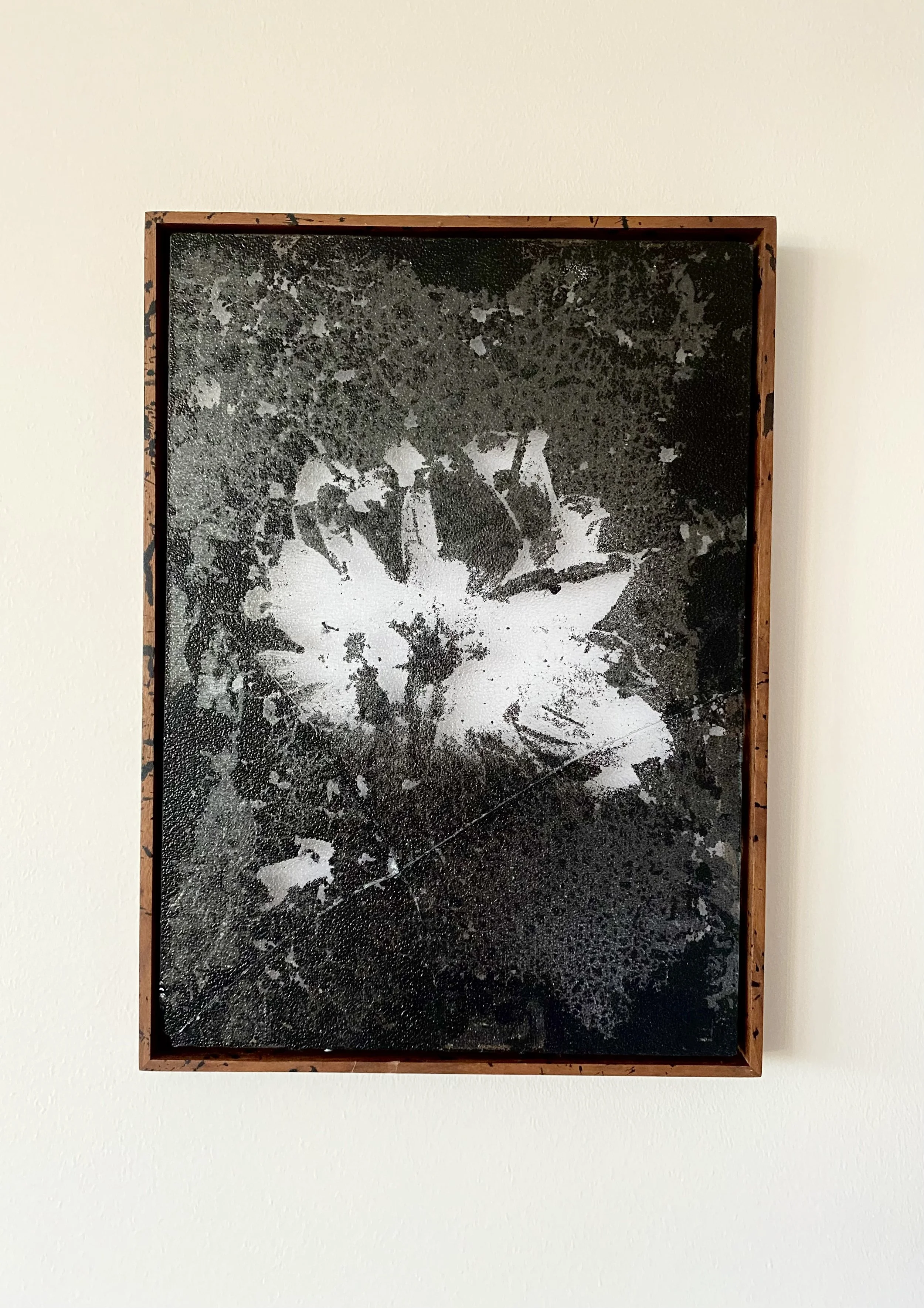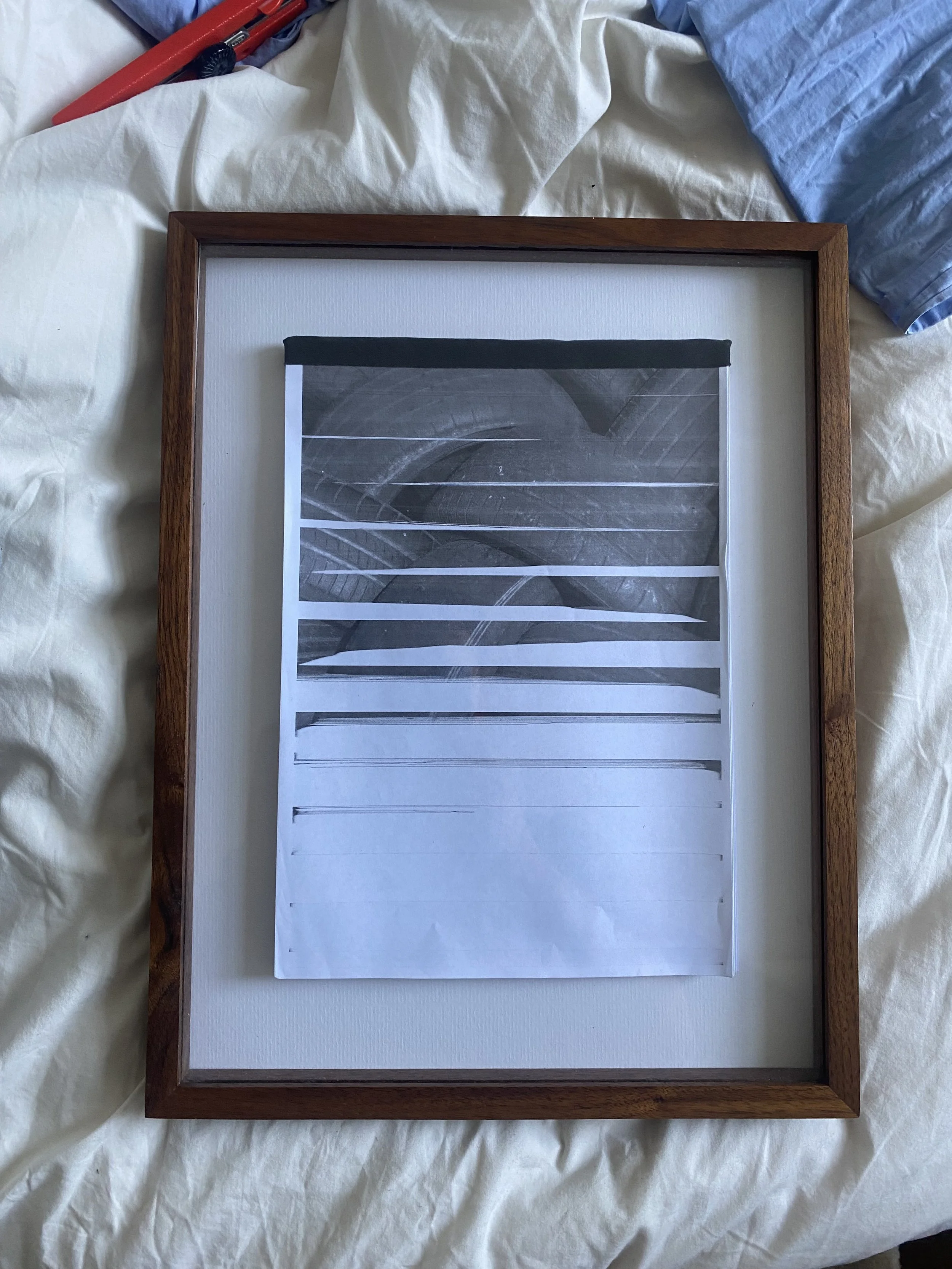 Untitled, 2019. I screen-printed my photograph onto a textured glass pannel and hand-made a custom Walnut tray frame.