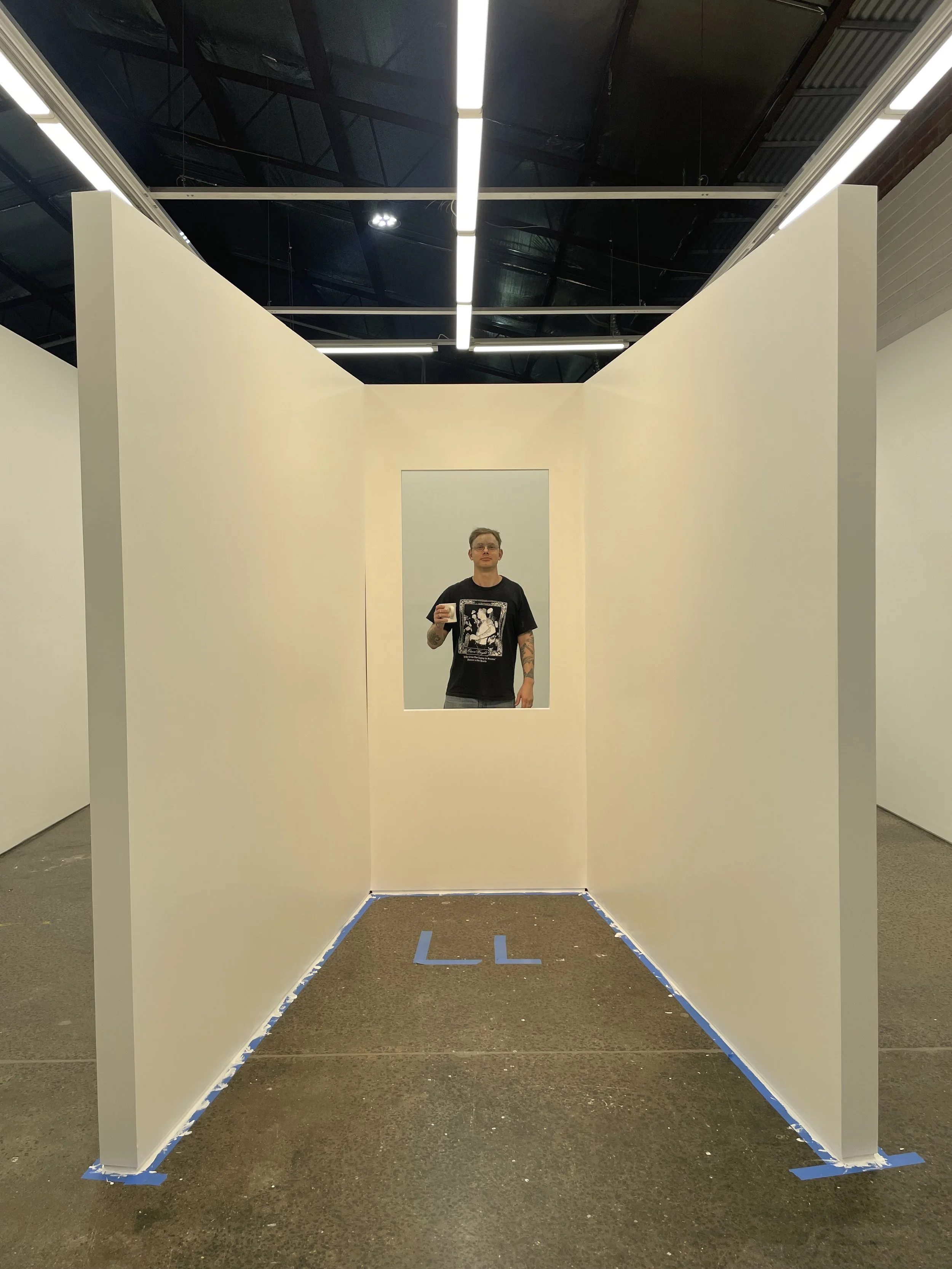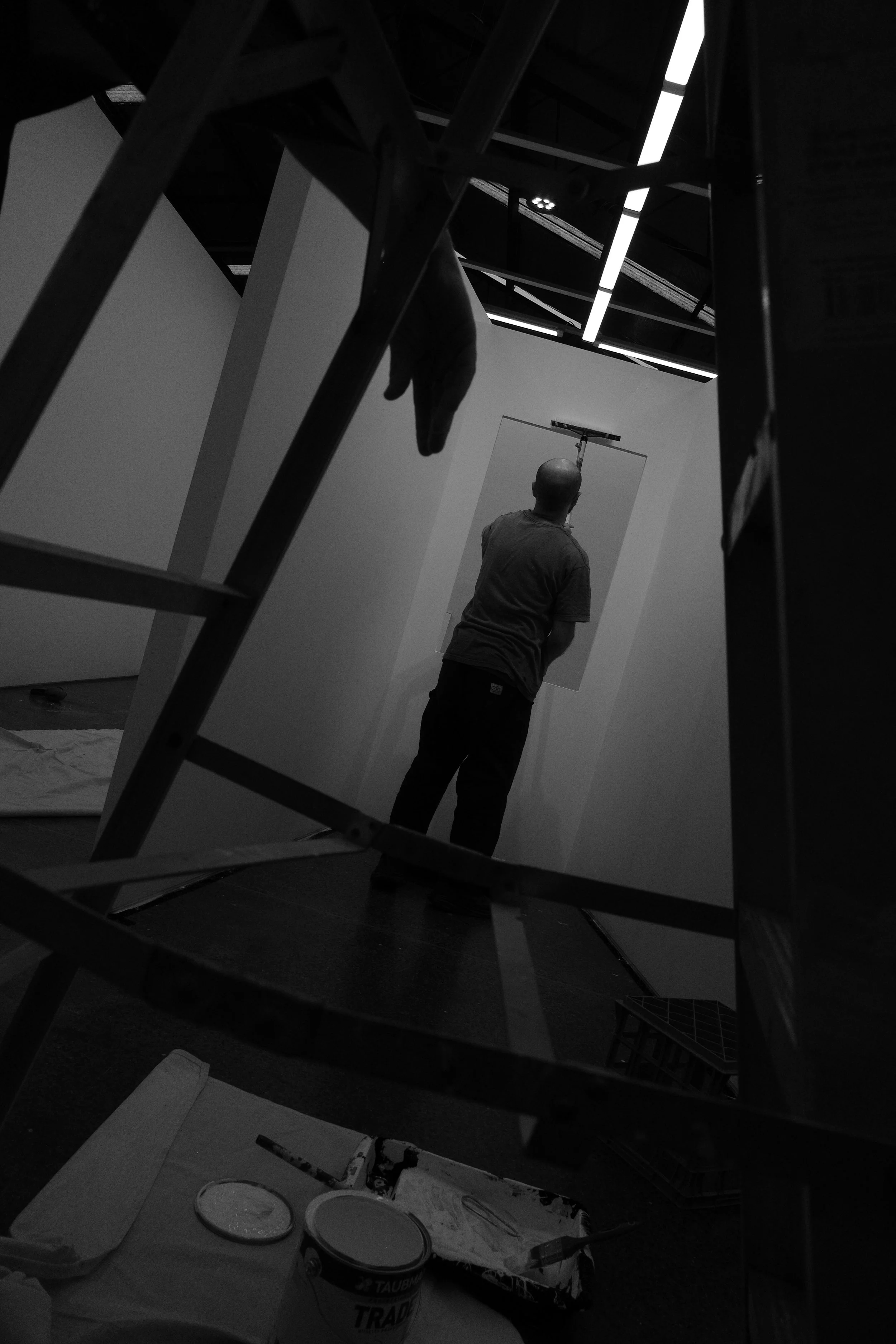 Final touches to the custom built walls and window for Remember? 2023 at Hillvale Gallery.
