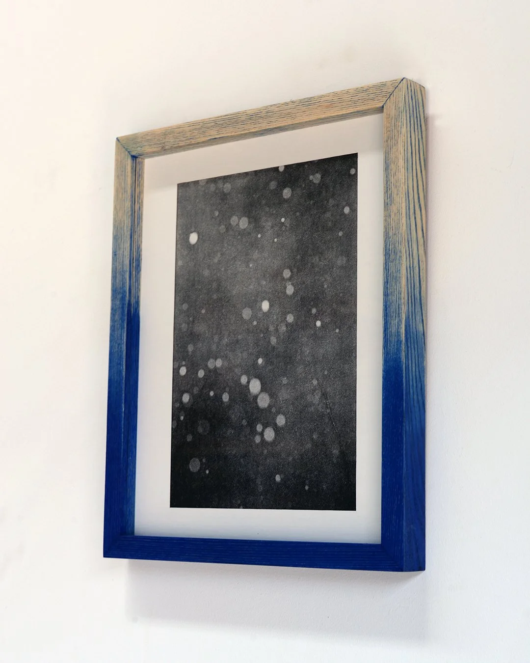 B 2019 Risograph in a hand made, custom stained (blue biro and cyan printer ink) American Oak frame. I made the entire piece from scratch.